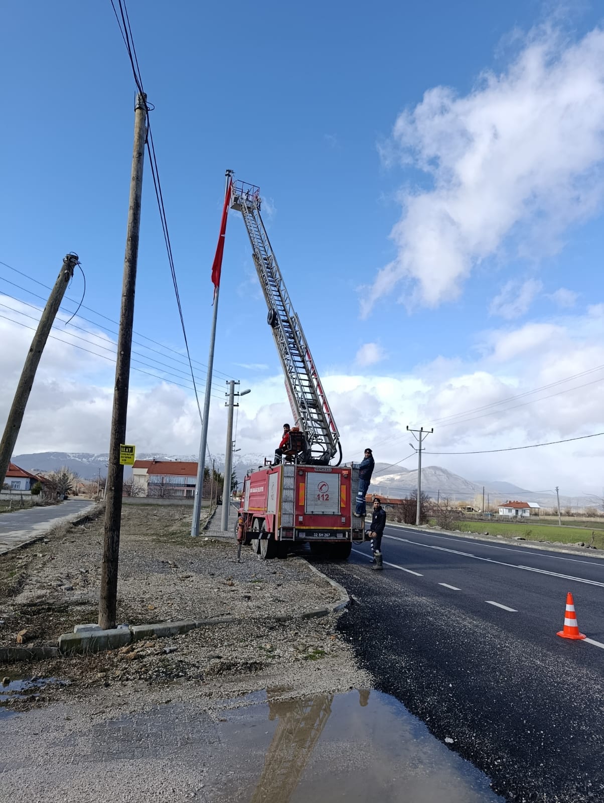 ???? KAMUOYUNA DUYURU Beldemiz girişinde göndere çekili bulunan Şanlı Türk Bayrağımız, direkte meydana gelen geçici teknik arıza nedeniyle bakım ve onarım amacıyla kısa süreliğine gönderden alınacaktır. Gerekli çalışmalar titizlikle tamamlanarak bayrağı